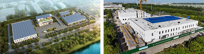 區(qū)環(huán)衛(wèi)基礎(chǔ)設(shè)施建設(shè)項(xiàng)目效果圖(左)與現(xiàn)場(chǎng)俯瞰圖(右)