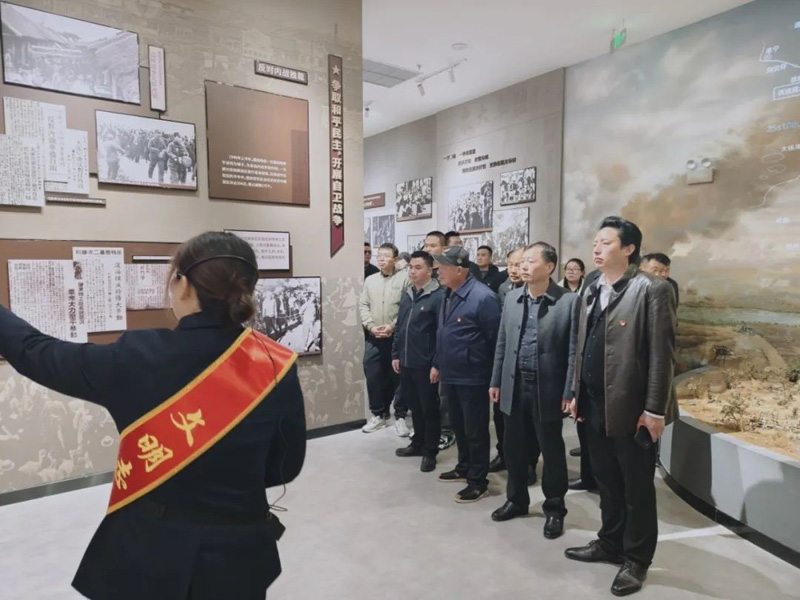 活動伊始,全體人員在講解員的引導(dǎo)下走進(jìn)五條嶺烈士紀(jì)念館。館內(nèi)陳列的一件件斑駁的文物、一幅幅珍貴的歷史照片、一段段震撼人心的英雄故事,生動再現(xiàn)了鹽阜大地上革命先烈浴血奮戰(zhàn)的壯烈場景。黨員們駐足凝望,聆聽講解員深情講述五條嶺烈士的英勇事跡,感悟革命先輩堅如磐石的理想信念和舍生忘死的家國情懷,為后續(xù)祭掃活動注入深刻的精神力量。