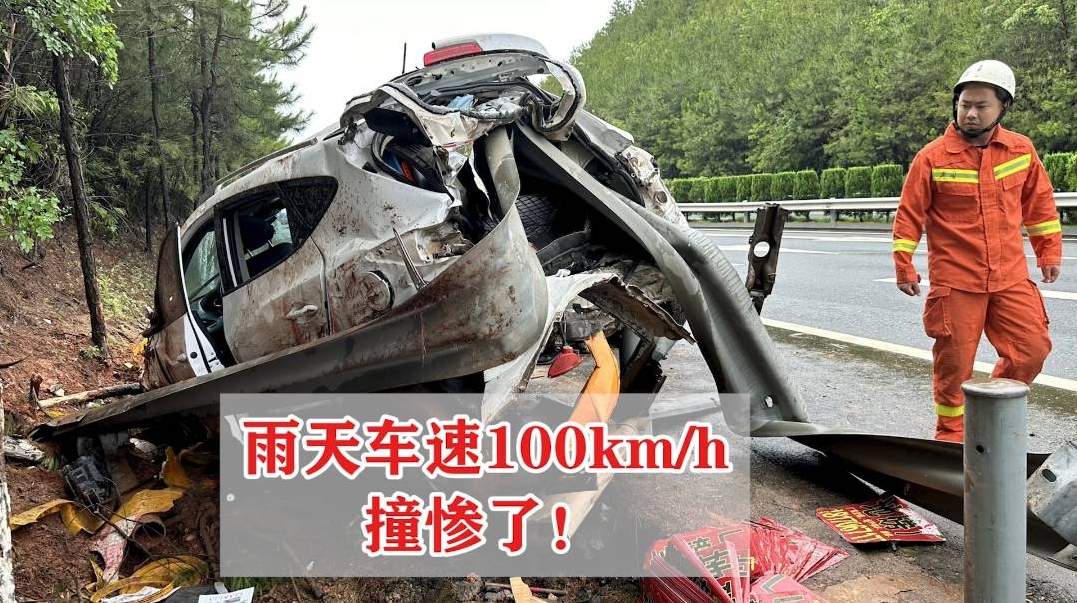 近日在泉南高速江西興國(guó)段,李某在雨天駕車時(shí),沒(méi)將路面濕滑情況放在心上,而是以100km/h的速度行駛,結(jié)果車輛突發(fā)側(cè)滑直撞路側(cè)護(hù)欄。車頭車尾均嚴(yán)重受損,車尾更是被護(hù)欄刺穿,幸運(yùn)的是未造成人員傷亡。